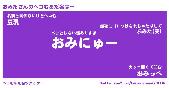 | ヒーロー風カッコイイあだ名 | 『スーパーオミタ』『ウルトラおみたマン』 |