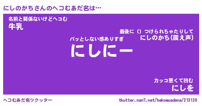 | ファンタジー風あだ名 | 『ニシフェル』『エターナルニシノカチー』 |