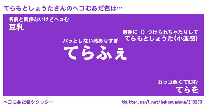 | 意味不明あだ名 | 『ペロリンてらもとしょうた』 |