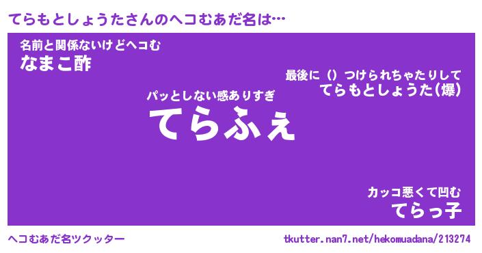 | 意味不明あだ名 | 『ペロリンてらもとしょうた』 |