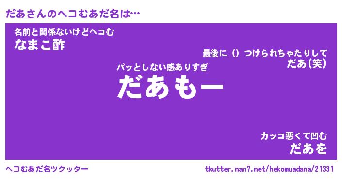 | ポケモン風あだ名 | 『ダアチュウ』『ダアダネ』『ヒダア』 |