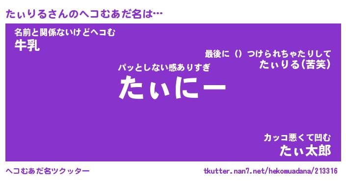 | 意味不明あだ名 | 『ペロリンたぃりる』『永久保存たぃりる』 |