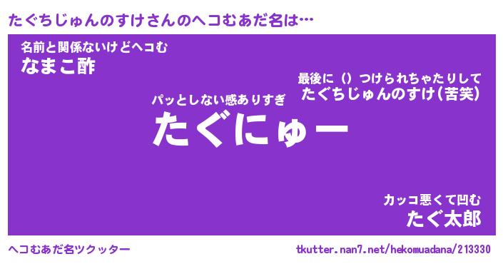 | 意味不明あだ名 | 『ペロリンたぐちじゅんのすけ』 |