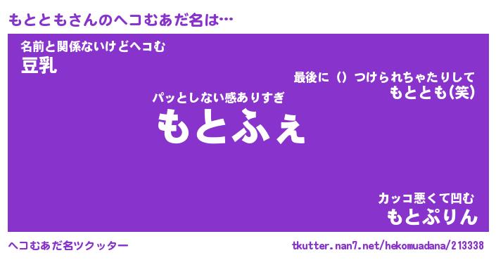 | 意味不明あだ名 | 『ペロリンもととも』『永久保存もととも』 |