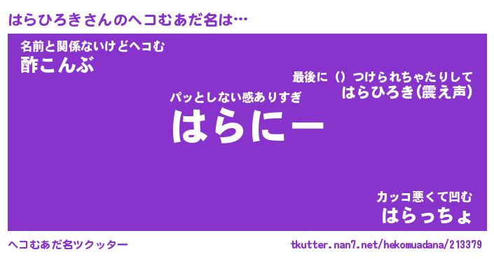 | ヒーロー風カッコイイあだ名 | 『スーパーハラヒロキ』『黄金騎士ハラ』 |