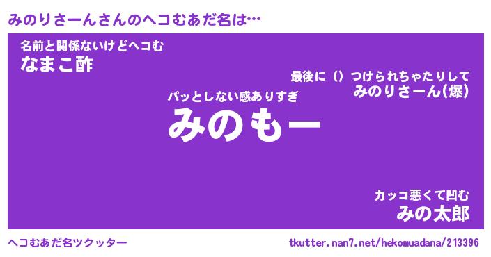 | 2回繰り返すあだ名 | 『みのみの』『みみのの』『なあなあ』 |