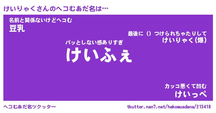 | 男性向けラノベタイトル風あだ名 | 『けいりゃくの憂鬱』 |