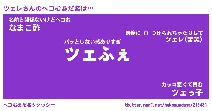 | 2回繰り返すあだ名 | 『ツェツェ』『ツツェェ』『ねちねち』 |