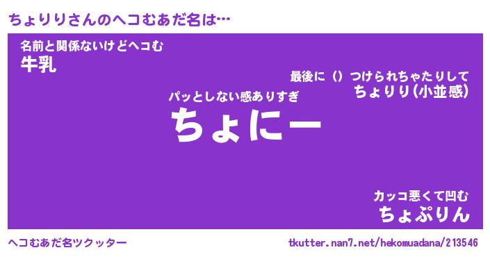 | 意味不明あだ名 | 『ペロリンちょりり』『永久保存ちょりり』 |
