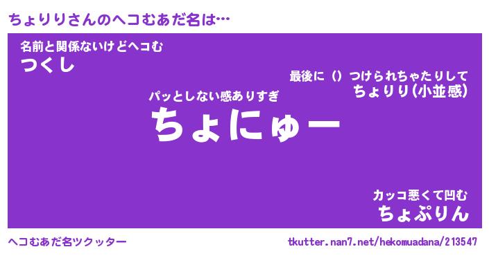 | 意味不明あだ名 | 『ペロリンちょりり』『永久保存ちょりり』 |