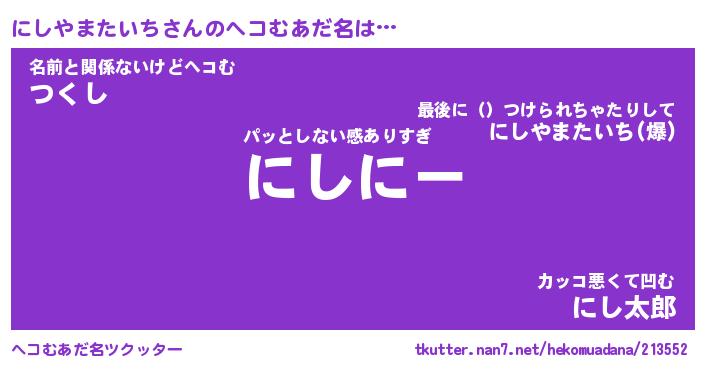 | ポケモン風あだ名 | 『ニシチュウ』『ニシヤダネ』 |