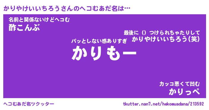 | 男性向けラノベタイトル風あだ名 | 『かりやけいいちろうの憂鬱』 |