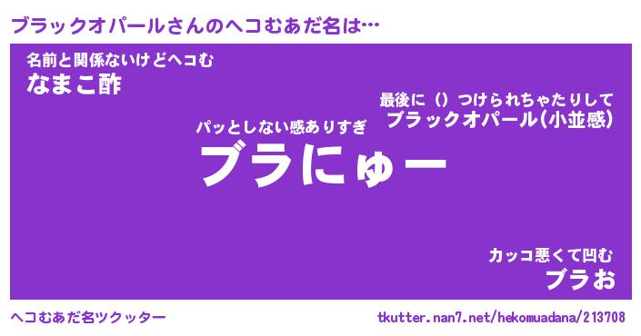 | 男性向けラノベタイトル風あだ名 | 『ブラックオパールの憂鬱』 |
