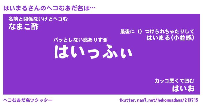 | ポケモン風あだ名 | 『ハイチュウ』『ハイマダネ』 |