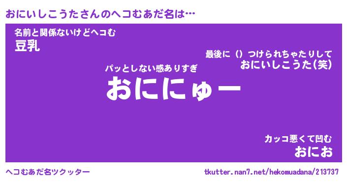 | 男性向けラノベタイトル風あだ名 | 『おにいしこうたの憂鬱』 |