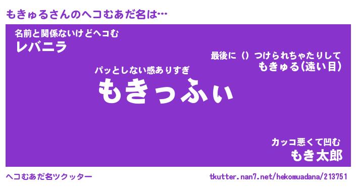 | 男性向けラノベタイトル風あだ名 | 『もきゅるの憂鬱』 |