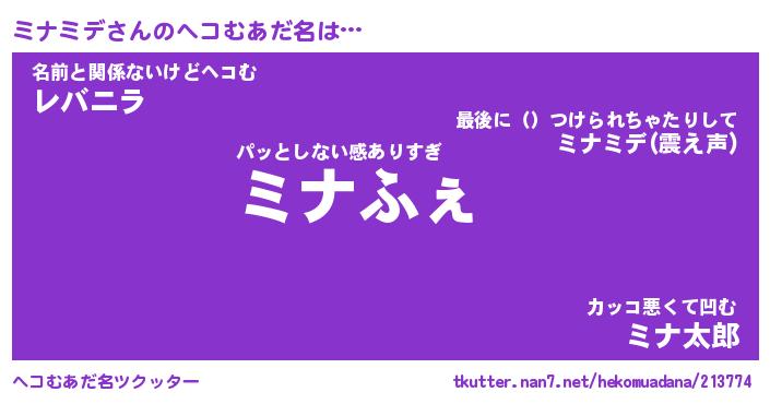 | ヒーロー風カッコイイあだ名 | 『スーパーミナミデ』『暗黒騎士ミナ』 |