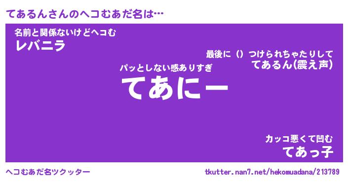 | 意味不明あだ名 | 『ペロリンてあるん』『永久保存てあるん』 |