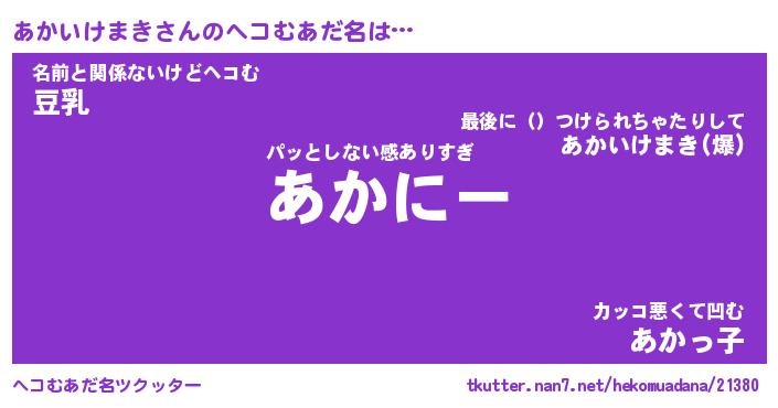 | 男性向けラノベタイトル風あだ名 | 『あかいけまきの憂鬱』 |