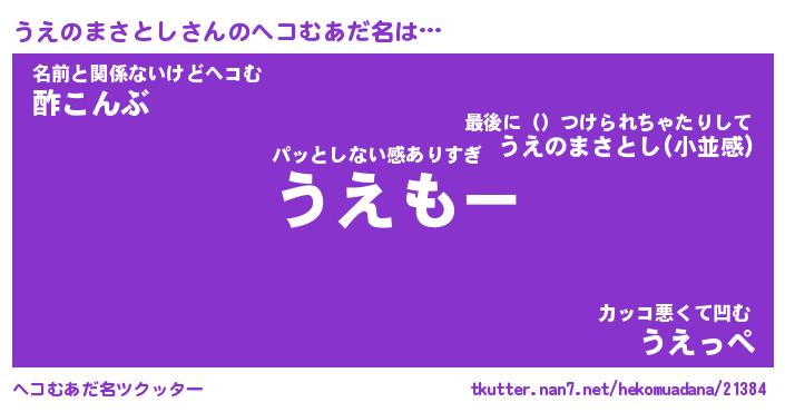 | 伝説のあだ名 | 『伝説のスナイパーうえのまさとし』 |