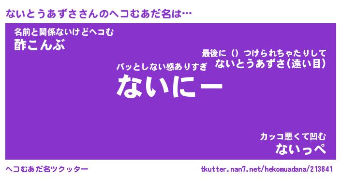 | 男性向けラノベタイトル風あだ名 | 『ないとうあずさの憂鬱』 |