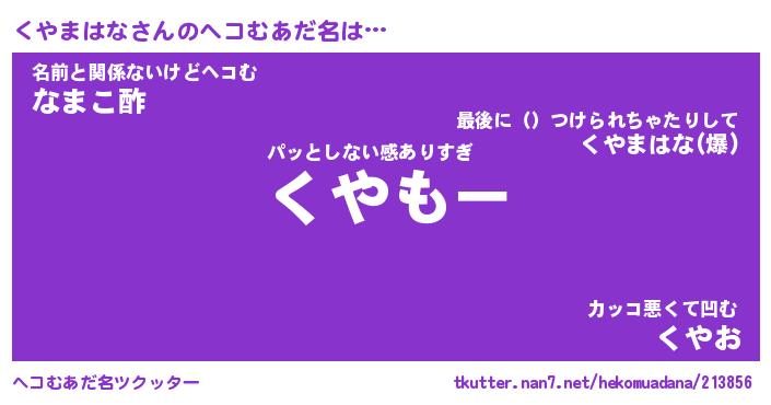 | ヒーロー風カッコイイあだ名 | 『スーパークヤマハナ』『黄金騎士クヤ』 |