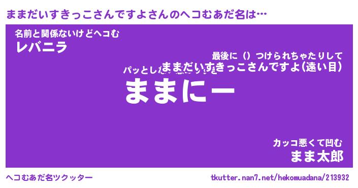 | 欧米人風あだ名 | 『マイケルままだいすきっこさんですよ』 |