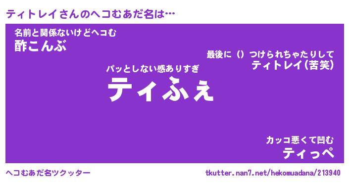 | ポケモン風あだ名 | 『ティチュウ』『ティトダネ』 |