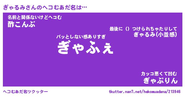 | ピコ太郎風あだ名 | 『ギコ二郎』『ピギ五郎』『ギャ八郎』 |
