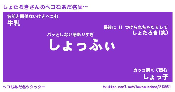| 男性向けラノベタイトル風あだ名 | 『しょたろきの憂鬱』 |