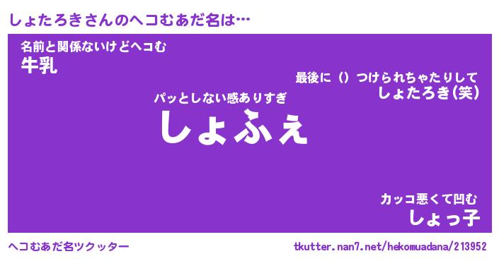 | 恥ずかしいあだ名 | 『プリティーしょたろき』『しょっちょ』 |
