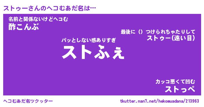 | ファンタジー風あだ名 | 『ストフェル』『エターナルストゥーー』 |
