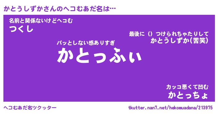 | 肩書あだ名 | 『かとうしずか御曹司』 |