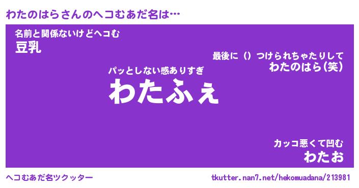 | 意味不明あだ名 | 『ペロリンわたのはら』 |