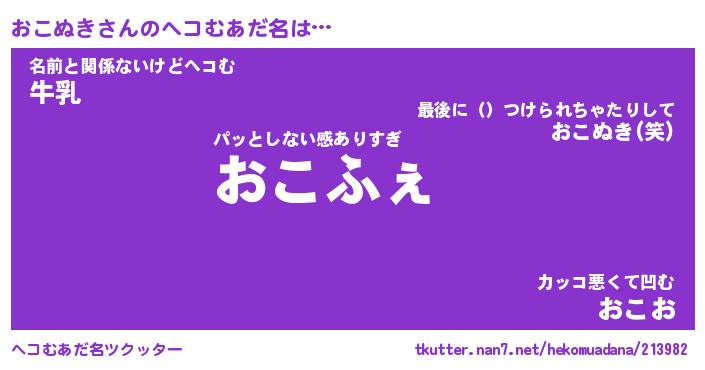 | 意味不明あだ名 | 『ペロリンおこぬき』『永久保存おこぬき』 |