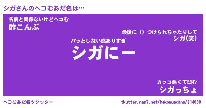 | ヒーロー風カッコイイあだ名 | 『スーパーシガ』『ウルトラシガマン』 |