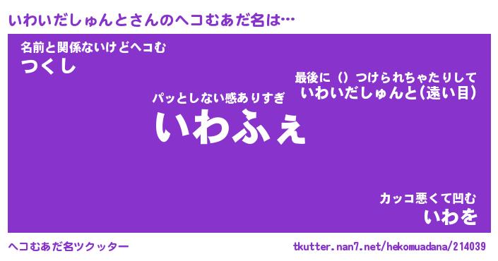 | 男性向けラノベタイトル風あだ名 | 『いわいだしゅんとの憂鬱』 |