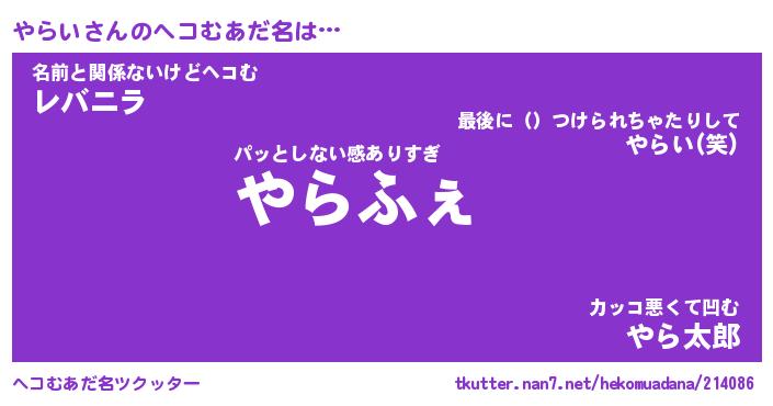 | 恥ずかしいあだ名 | 『プリティーやらい』『やらっちょ』 |