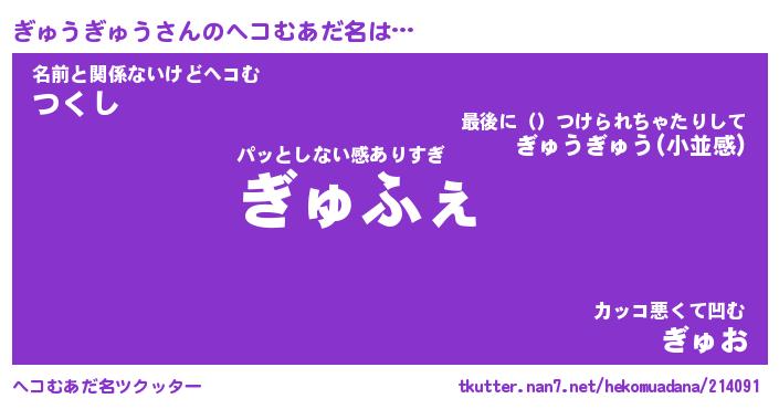 | 2回繰り返すあだ名 | 『ぎゅぎゅ』『ぎぎゅゅ』『くねくね』 |
