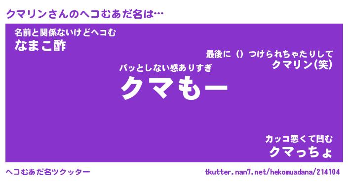 | 自動車の名前っぽいあだ名 | 『クマティマ』『クスラー』『クント』 |