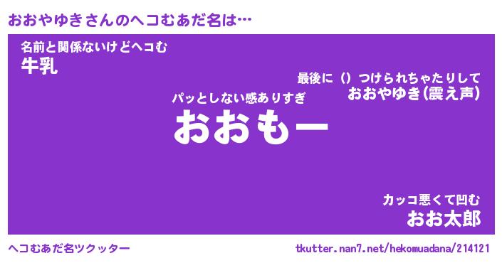 | ファンタジー風あだ名 | 『オオフェル』『エターナルオオヤユキー』 |