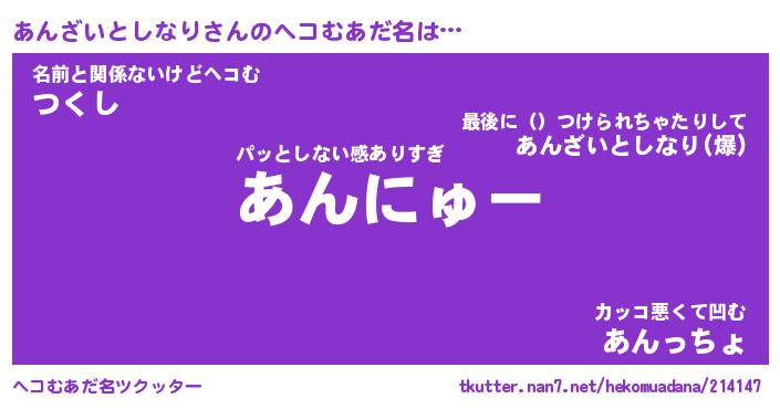 | ポケモン風あだ名 | 『アンチュウ』『アンザダネ』 |