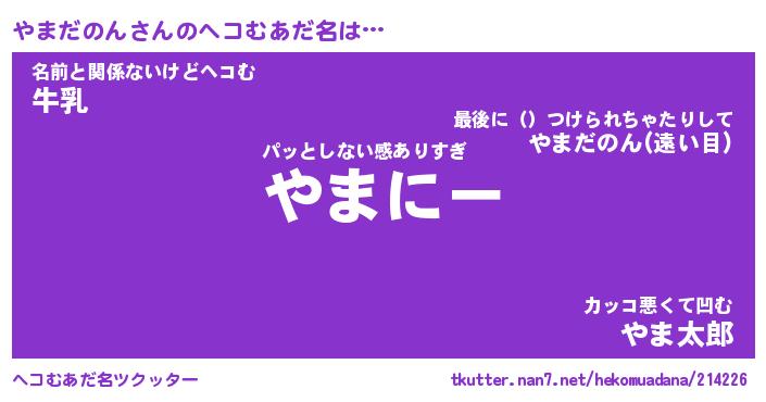 | ファンタジー風あだ名 | 『ヤマフェル』『エターナルヤマダノンー』 |