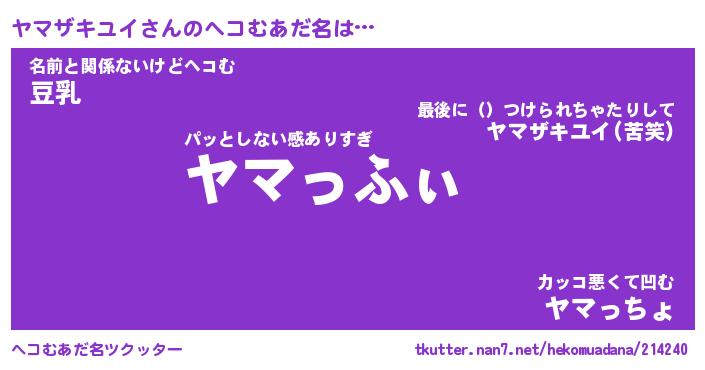 | 恥ずかしいあだ名 | 『プリティーヤマザキユイ』『ヤマっちょ』 |