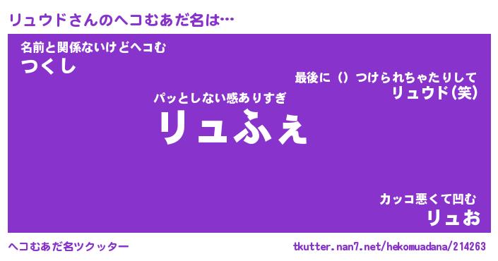 | 意味不明あだ名 | 『ペロリンリュウド』『永久保存リュウド』 |