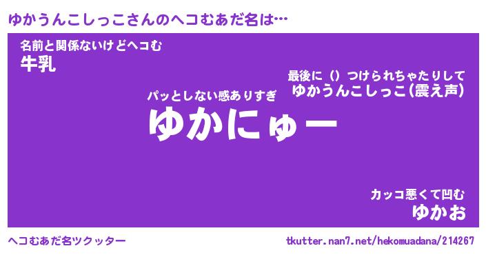 | 恥ずかしいあだ名 | 『プリティーゆかうんこしっこ』 |