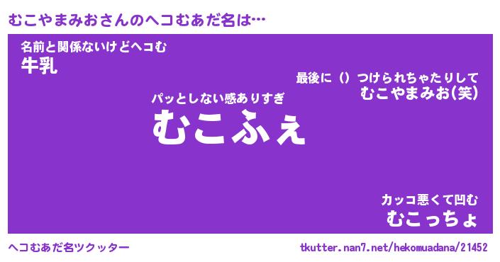 | 2回繰り返すあだ名 | 『むこむこ』『むむここ』 |