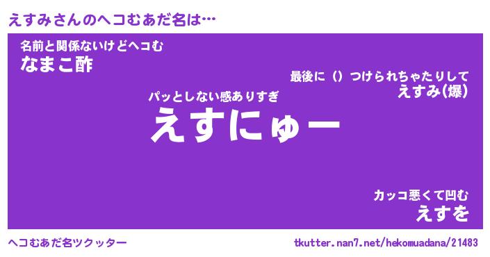 | 意味不明あだ名 | 『ペロリンえすみ』『えすみフォーエバー』 |