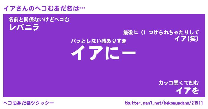 | 2回繰り返すあだ名 | 『イアイア』『イイアア』『ぬるぬる』 |