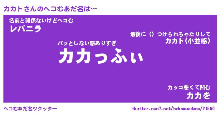 | ファンタジー風あだ名 | 『カカフェル』『エターナルカカトー』 |